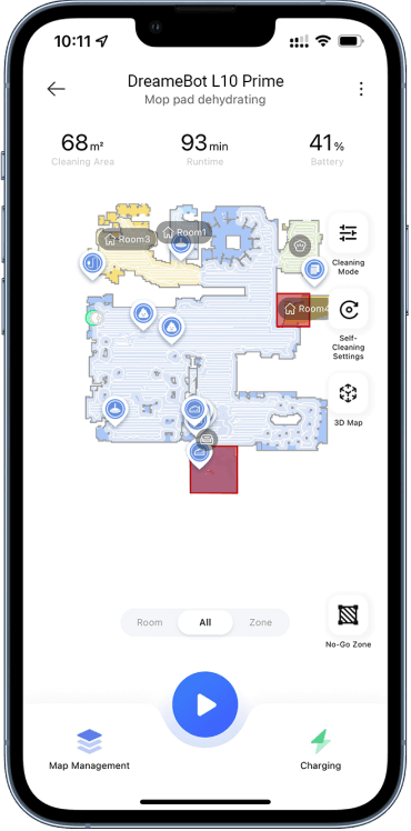 Advanced ultrasonic carpet detection allows L10 Prime to identify carpeting and raise its mops up to 7mm* and keep carpets nice and dry.